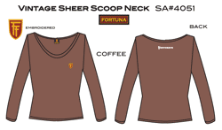 FORTUNA SHIELD is embroidered on the left chest of this scoop neck.